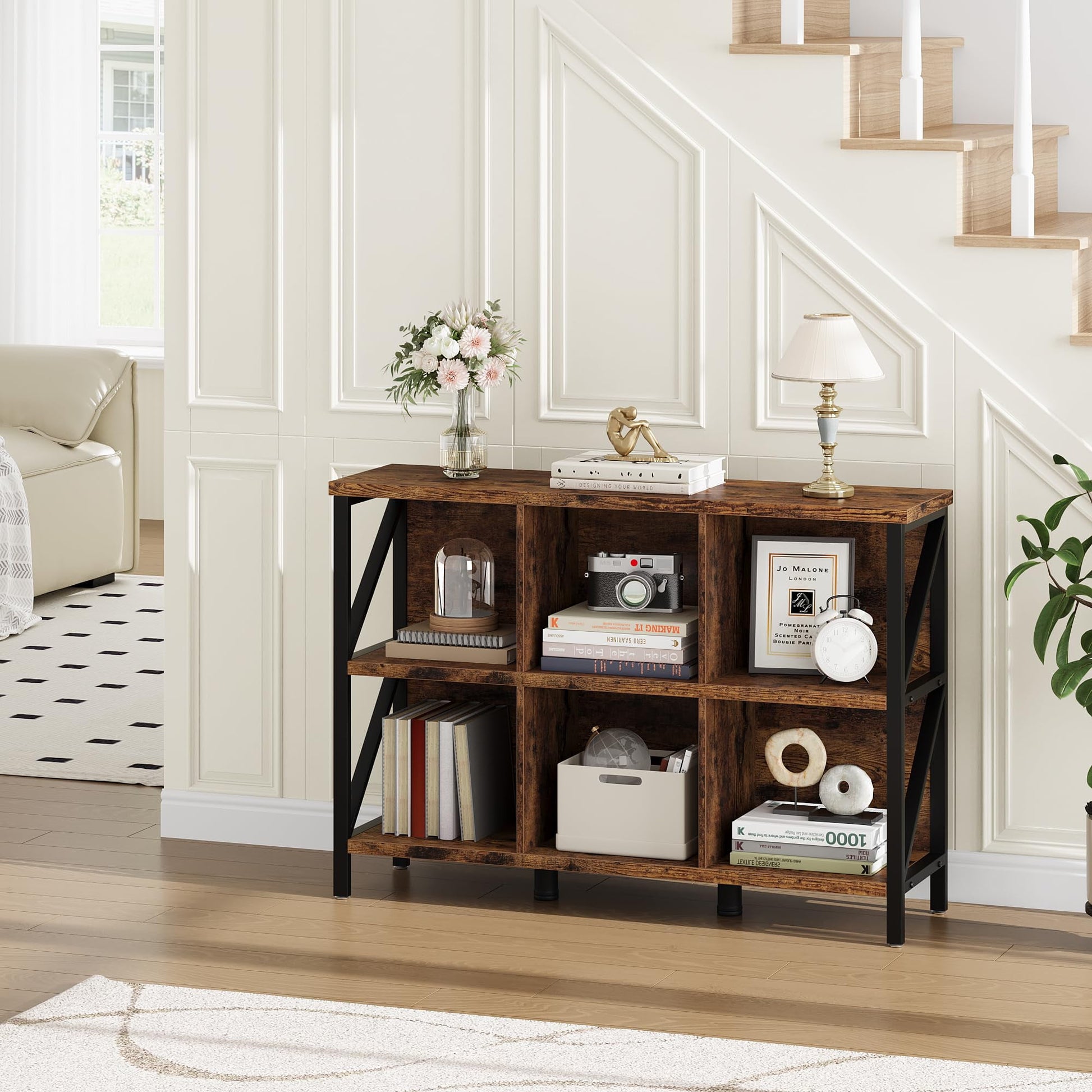 - [6-Cube Storage Organizer]: Declutter and organize any space in your home with this versatile cube storage bookcase. Perfect for the entryway, living room, or bedroom, this storage solution offers ample room to display books, photos, plants, and decor, transforming your space into a tidy and inviting environment. The charming farmhouse-inspired design adds a rustic touch, creating a cozy and organized atmosphere in your home.