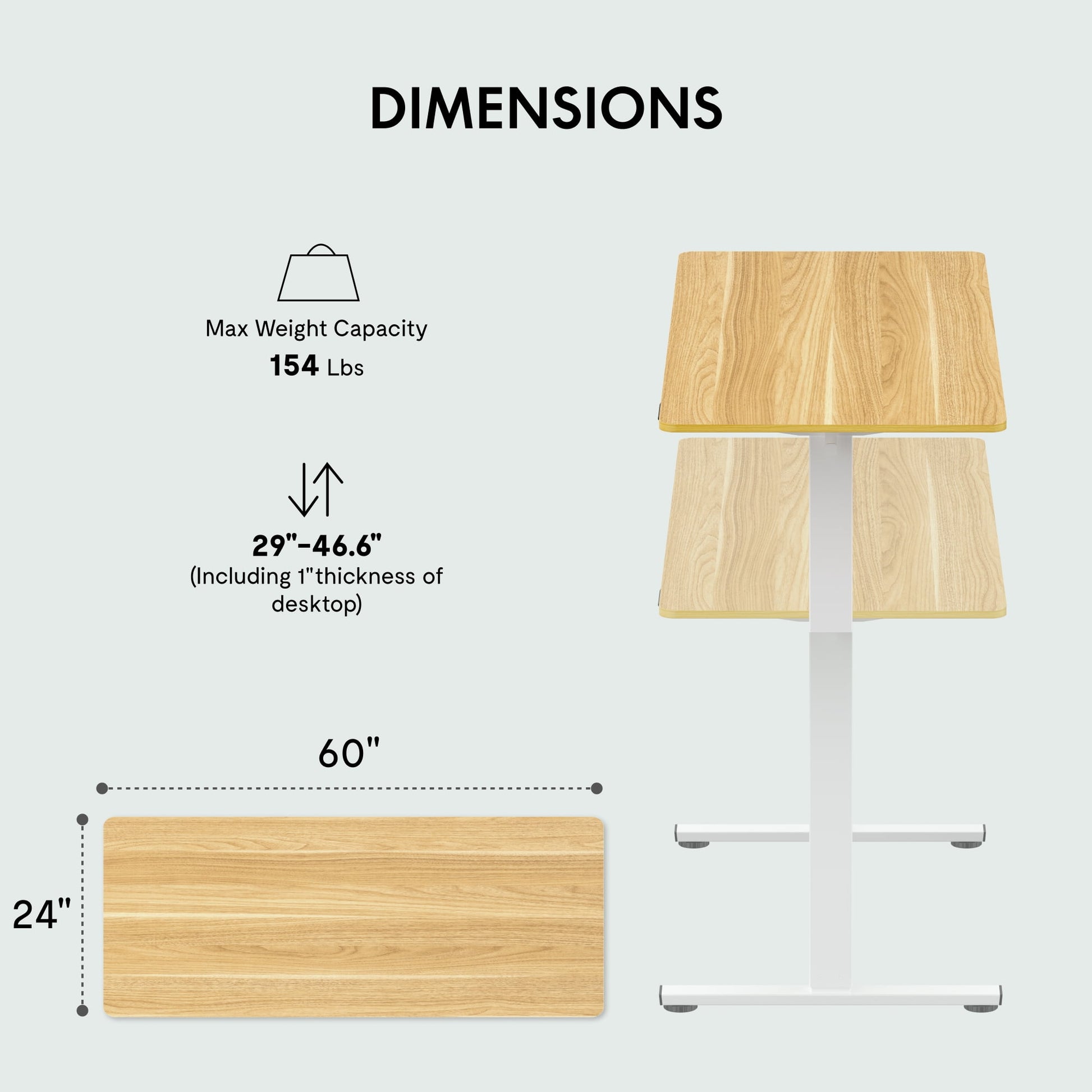 - Destop Size: 60"x24"x1"