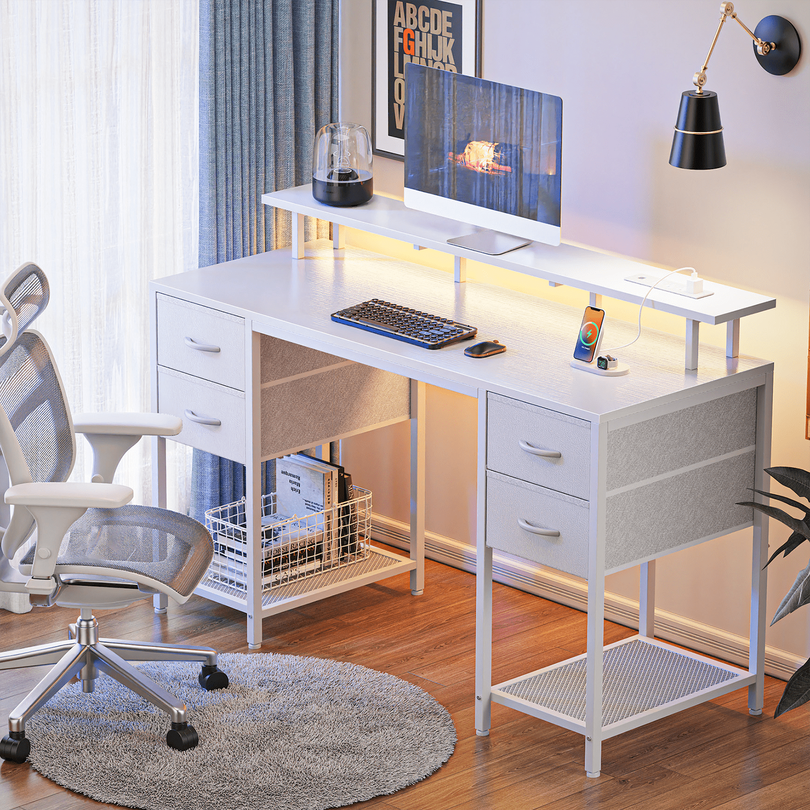 - Computer Desk with LED Lights: This desk offers LED lights, 4 fabric drawers for storage, and built-in power outlets, making it ideal for home office or gaming room use