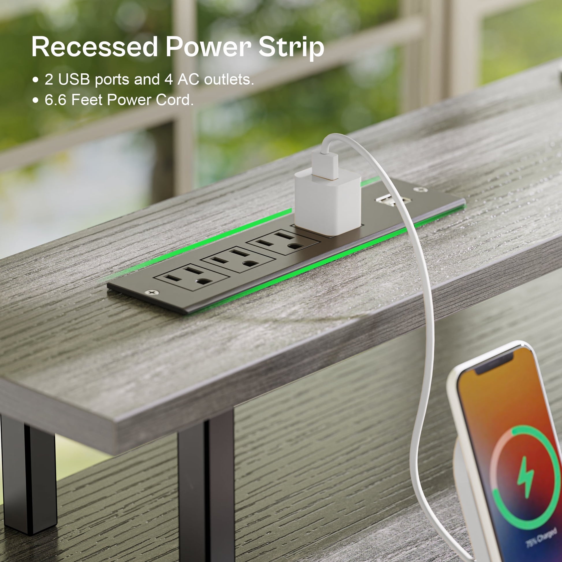 - Desk with Outlets: With 4 AC outlets and 2 USB ports, this gaming desk charges your office and gaming devices and keeps wires tidy.
