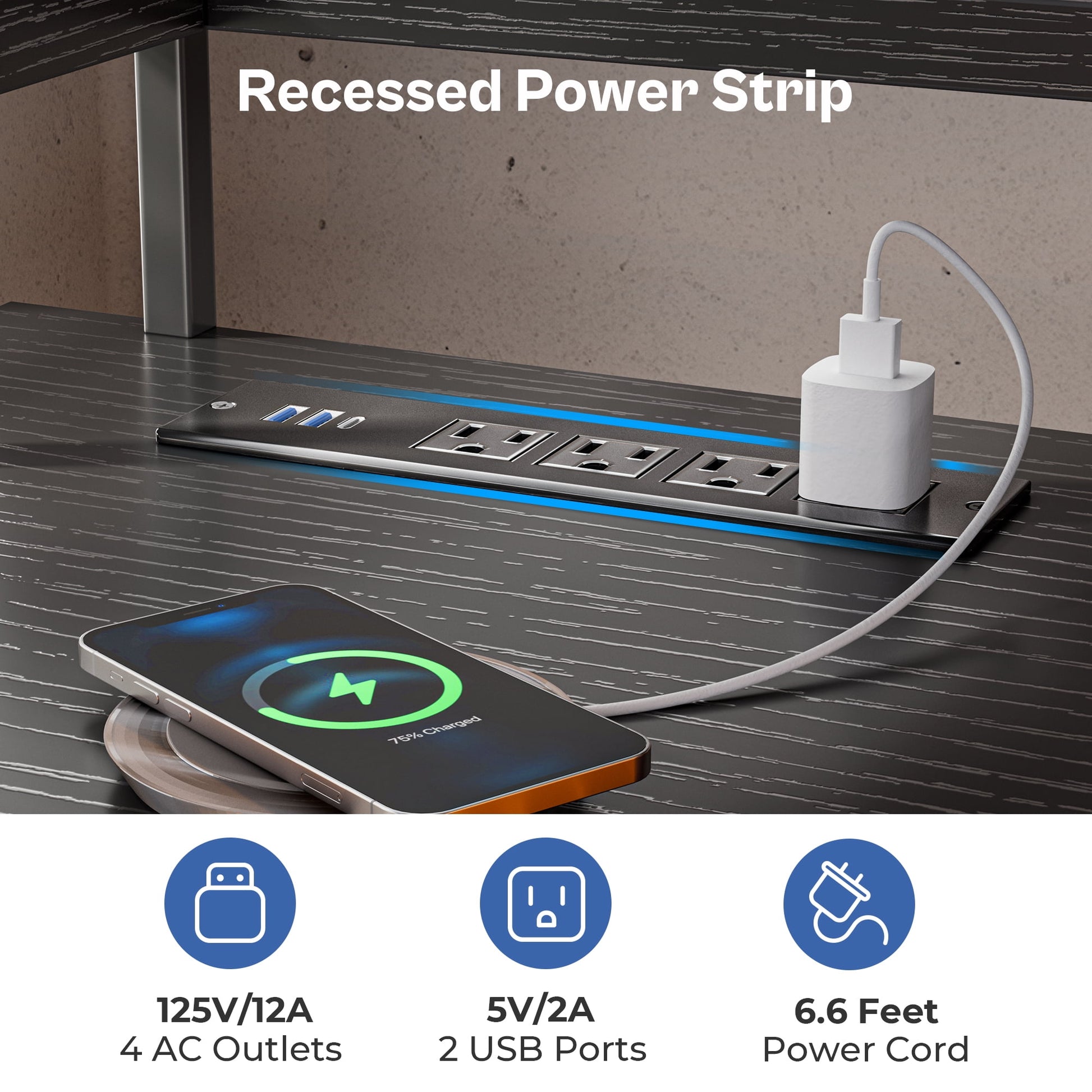 - AC Outlets and USB Ports: This gaming desk features 4 AC outlets and 2 USB ports for convenient charging, reducing wire clutter. Versatile for writing, home office, study, or as an L desk for corners.