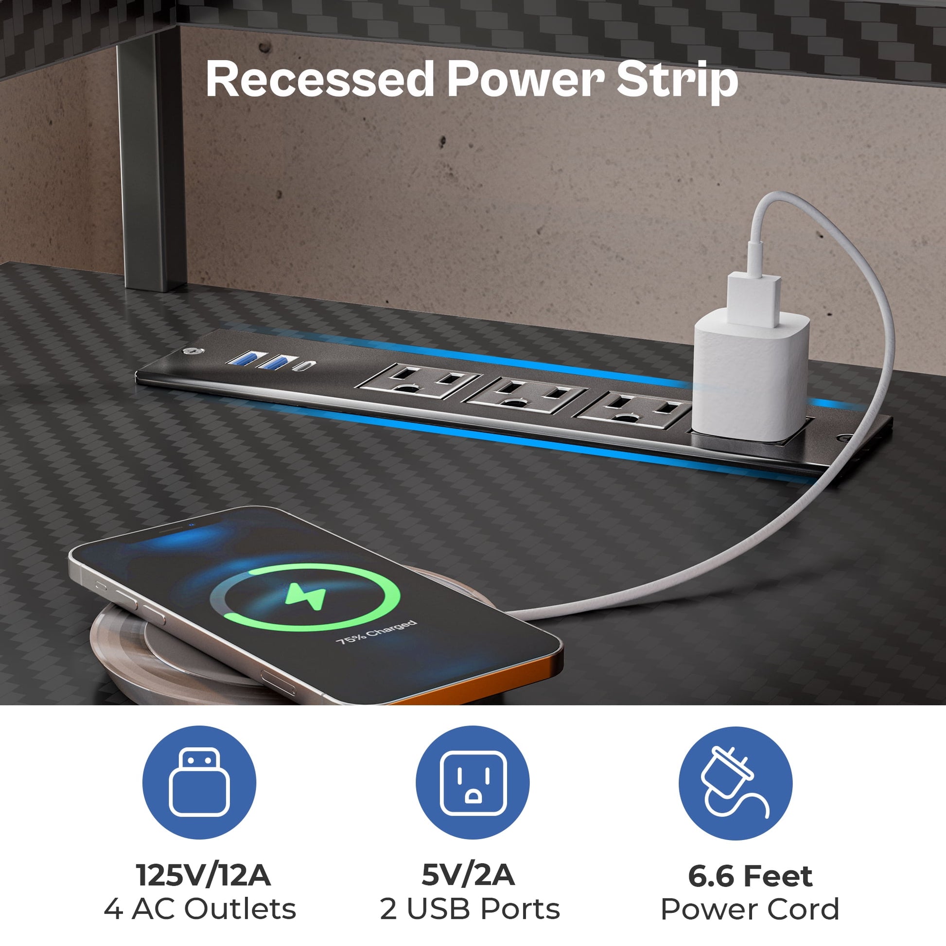 - AC Outlets and USB Ports: This gaming desk features 4 AC outlets and 2 USB ports for convenient charging, reducing wire clutter. Versatile for writing, home office, study, or as an L desk for corners.