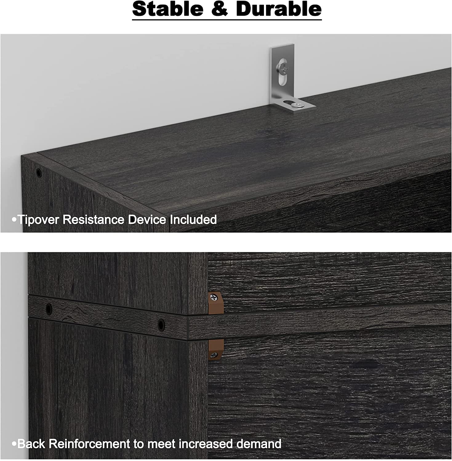 - Stable Construction - With strengthen screws and the tipover resistance device, the bookcase is more stable
